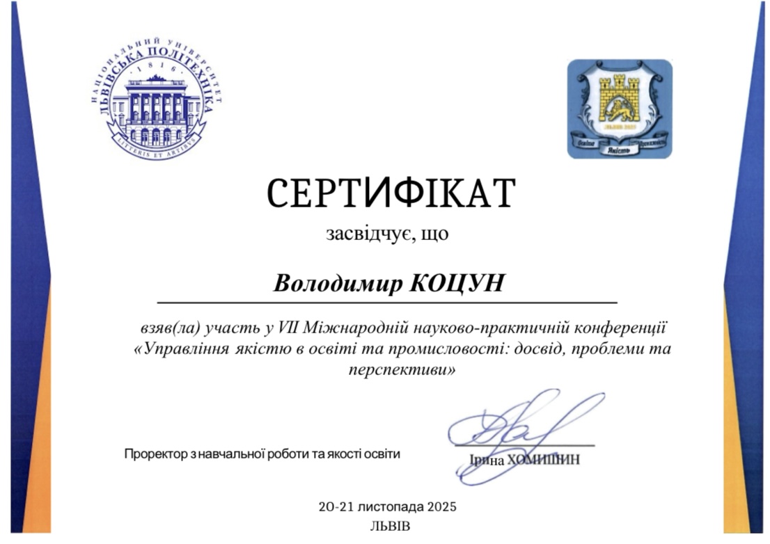 Участь у VII Міжнародній науково-практичній конференції „УПРАВЛІННЯ ЯКІСТЮ В ОСВІТІ ТА ПРОМИСЛОВОСТІ: ДОСВІД, ПРОБЛЕМИ ТА ПЕРСПЕКТИВИ” Директор Львівської