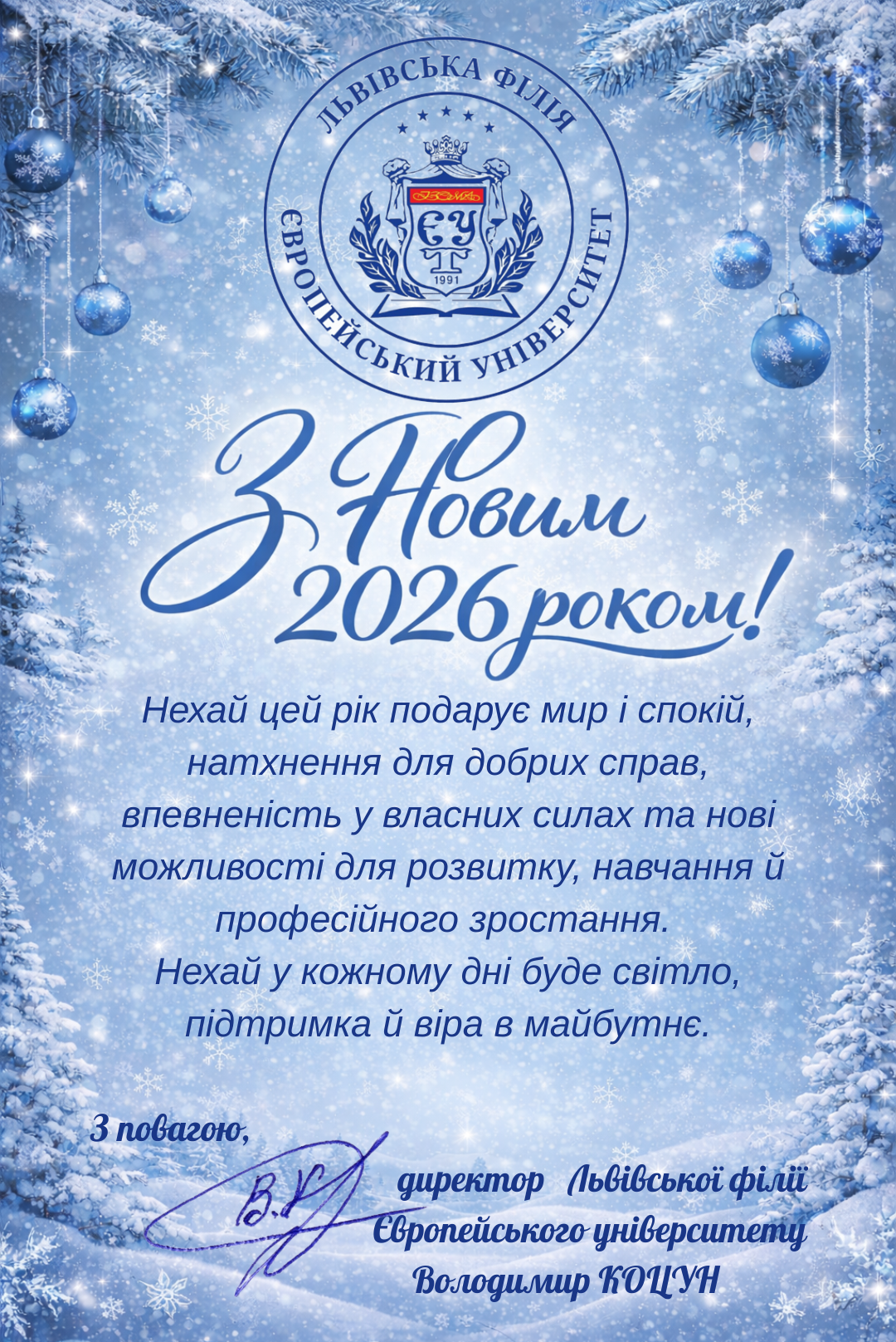 Нехай цей рік подарує мир і спокій, натхнення для добрих справ, впевненість у власних силах та нові можливості для розвитку, навчання й професійного зроста