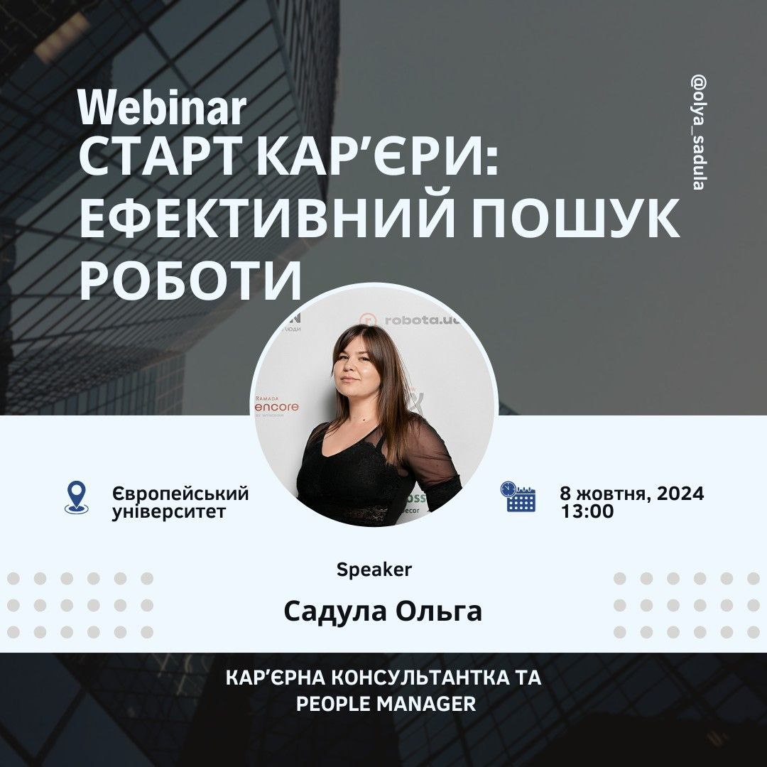 Запрошуємо на вебінар здобувачів освіти на тему: Старт кар'єри: ефективний пошук роботи