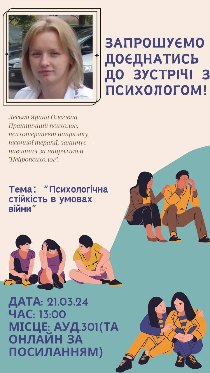 Запрошуємо на зустріч "Психологічна стійкість в умовах війни"