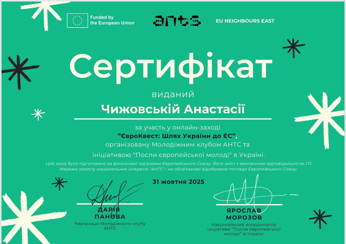 Здобувачі вищої освіти Львівської філії ПВНЗ «Європейський університет» взяли участь у Євроквесті «Шлях України до ЄС». 31 жовтня 2025 року Молодіжним клуб