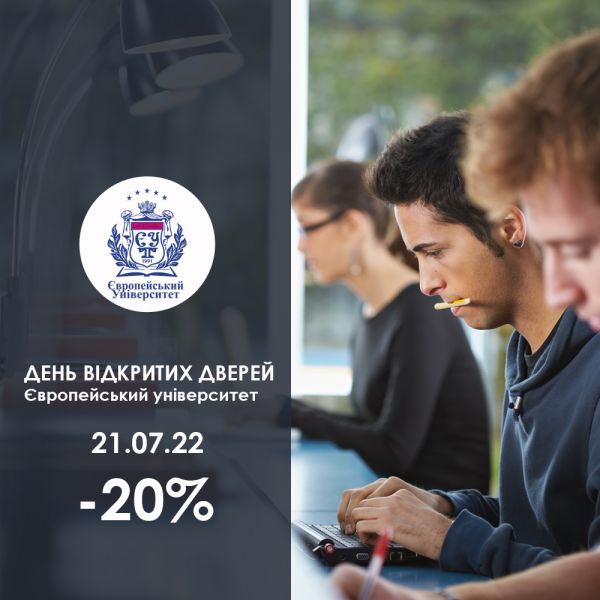 21 липня в Європейському університеті відбудеться День відкритих дверей. Ви дізнаєтеся про можливості навчання а ЄУ та матимете змогу отримати знижку 20%.