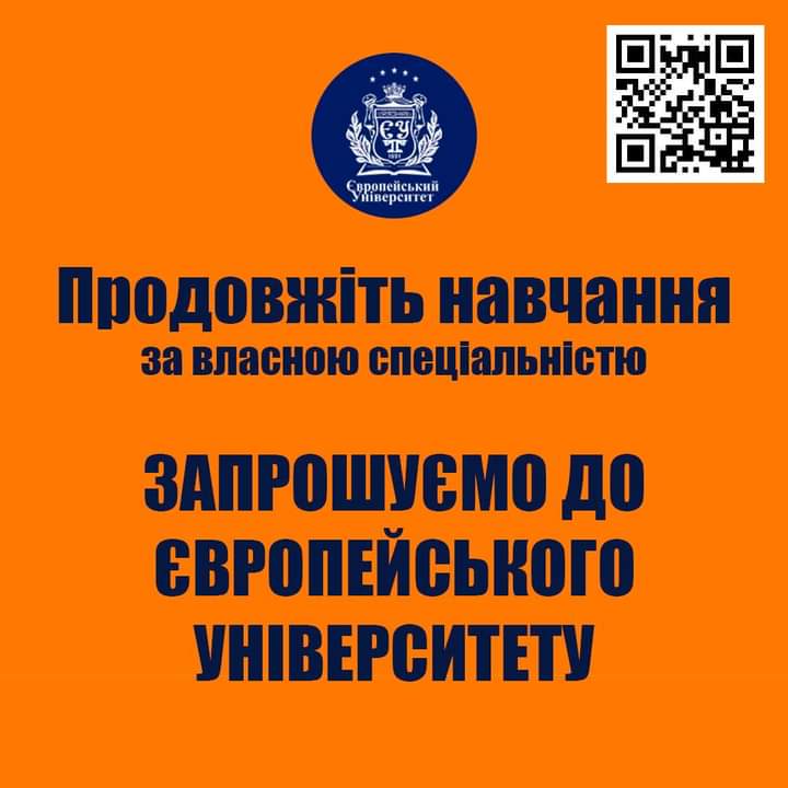 Дружня студентська родина Європейського університету запрошує студентів усіх закладів освіти, що тимчасово не мають можливості надавати освітні послуги, пр