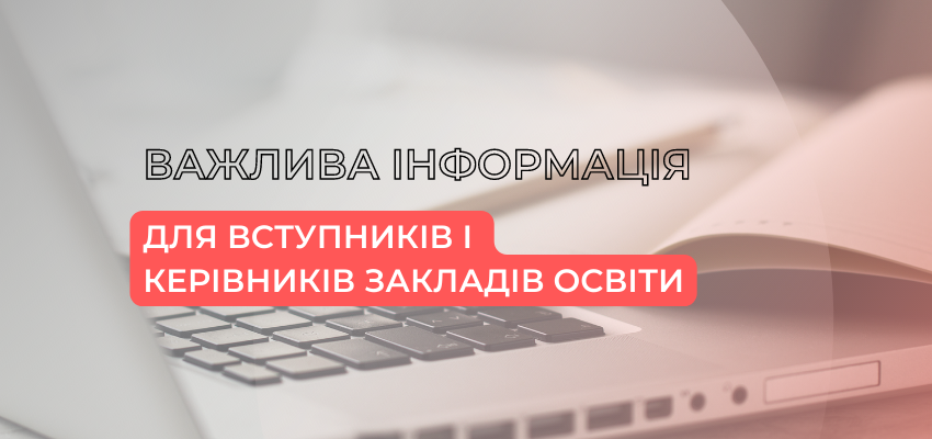 ВАЖЛИВА ІНФОРМАЦІЯ ДЛЯ ВСТУПНИКІВ І КЕРІВНИКІВ ЗАКЛАДІВ ОСВІТИ