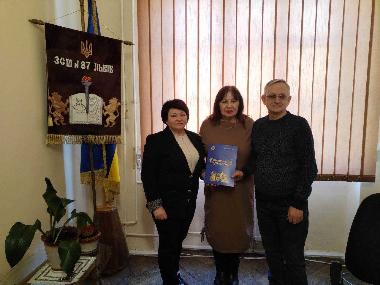26.02.2025 року підписано меморандуми про співпрацю між Львівською філією Європейського університету та ЗЗСО 87 Львівської міської ради ім. Ірини Калинець