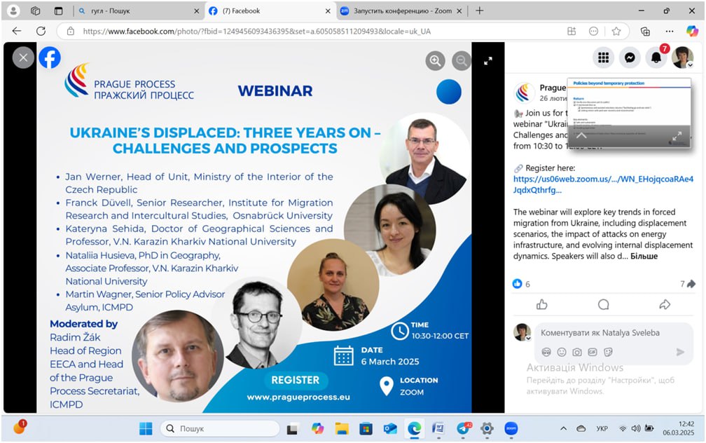 06.03.25р. викладачі Львівської філії ПВНЗ «Європейський університет» брали участь у вебінарі на тему "Переміщені в Україні: три роки – виклики та перспек