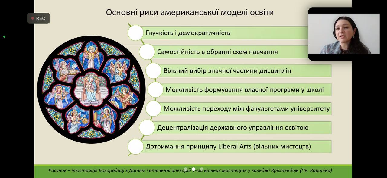 Завідувач кафедри менеджменту та соціально-гуманітарних дисциплін Гункевич Маріанна Богуславівна представила доповідь на тему "Американська модель освіти".