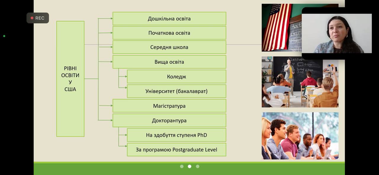 Зокрема, було обговорено основні особливості американської освіти, рівні навчання та специфічні риси на кожному з них, вартість і терміни навчання.