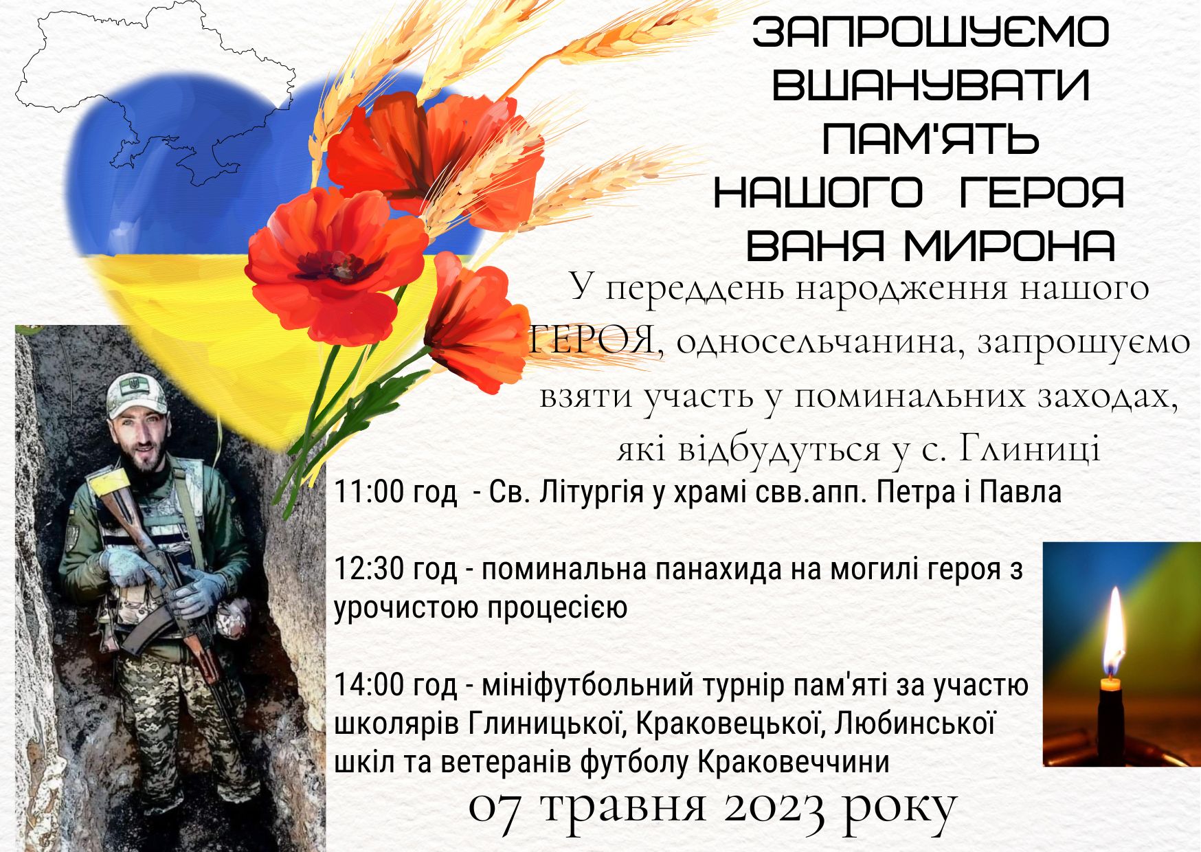 Директор Львівської філії взяв участь в організації та проведенні національно-патріотичного заходу, присвяченого пам'яті героя Ваньо Мирона, який загинув 24.01.2023 року під час виконання бойового завдання на околицях Бахмута.